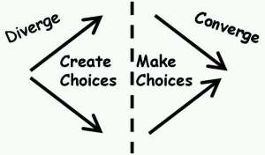 I’m currently reading Resonate by Nancy Duarte which is about how to put together presentations that really connect with your audience using techniques adopted by professional story tellers (like film makers for example). In Duarte’s book I came across the diagram below which Tim Brown also uses in his book Change by Design.
